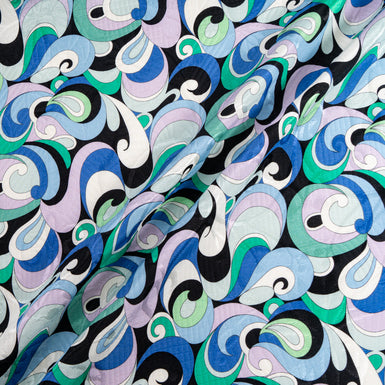 Emanuel Ungaro's use of brightly coloured floral & abstract printed fabrics are highly sought after. Ungaro understood the 'body beautiful' and the luxurious printed and laminated silk twill, brocade, jacquard, crepe, luxury cotton and wool blended fabrics sit in all the right places and drape perfectly. View our selection of curated Emanuel Ungaro printed fabrics.