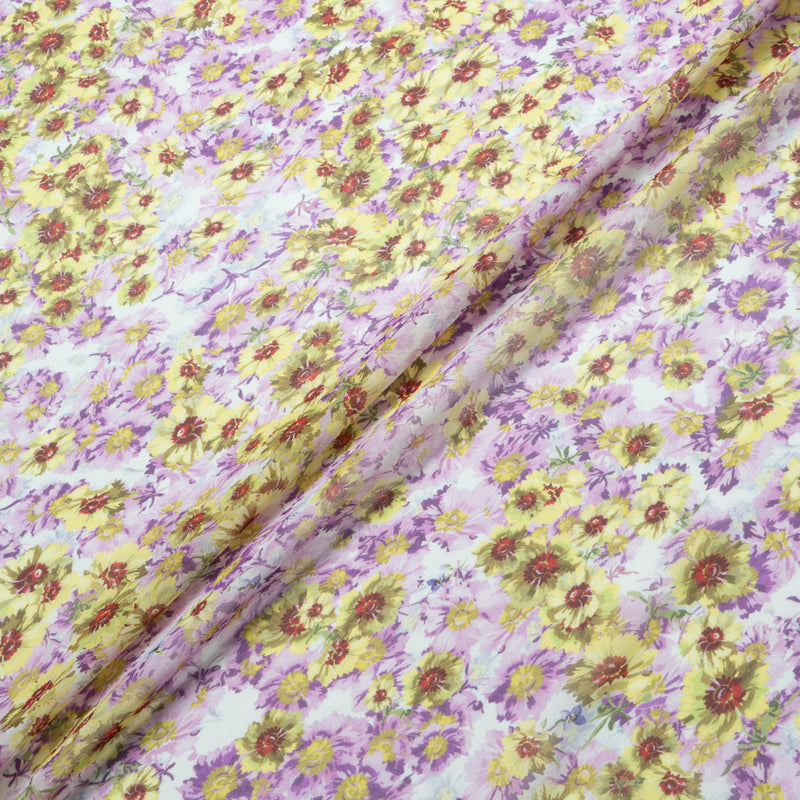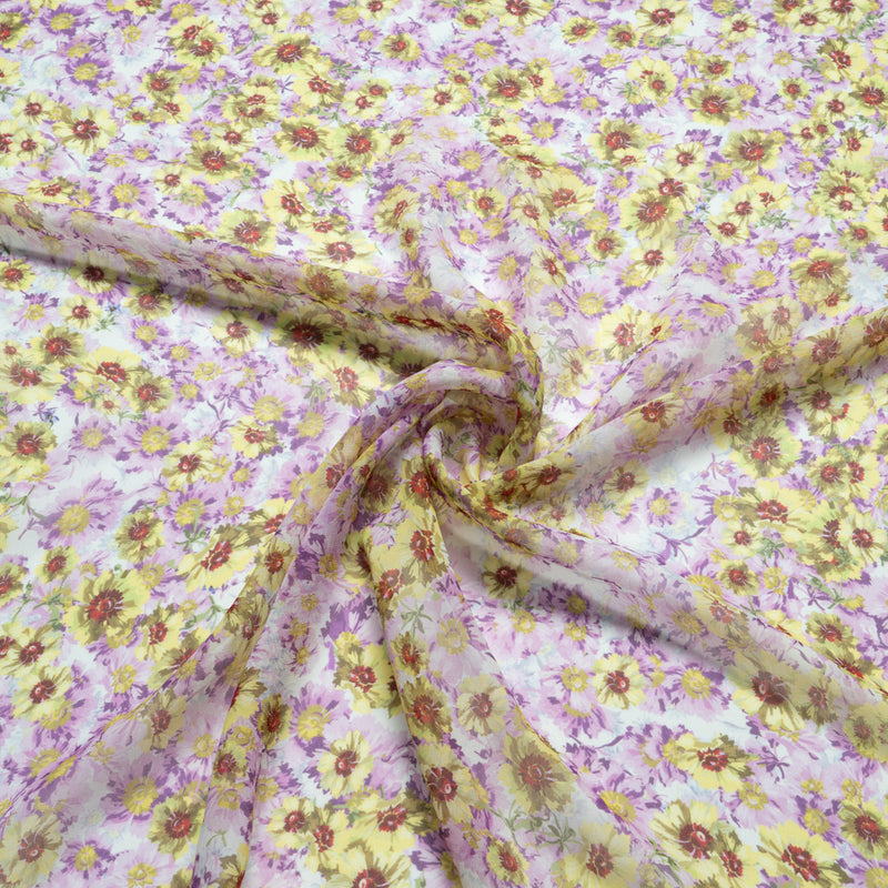 Yellow & Purple Floral Printed Pure Silk Georgette