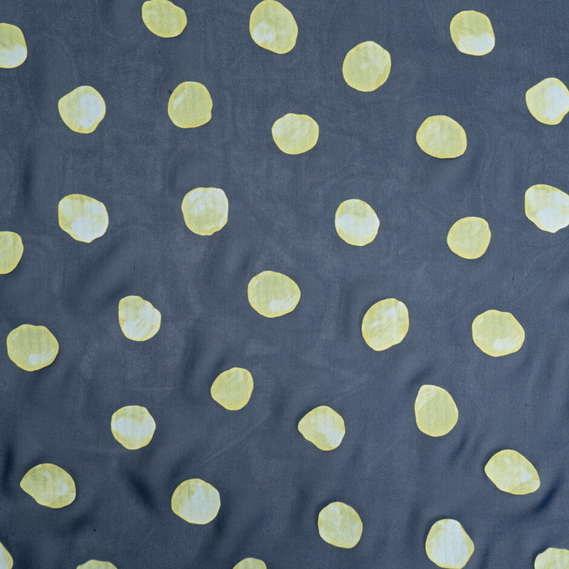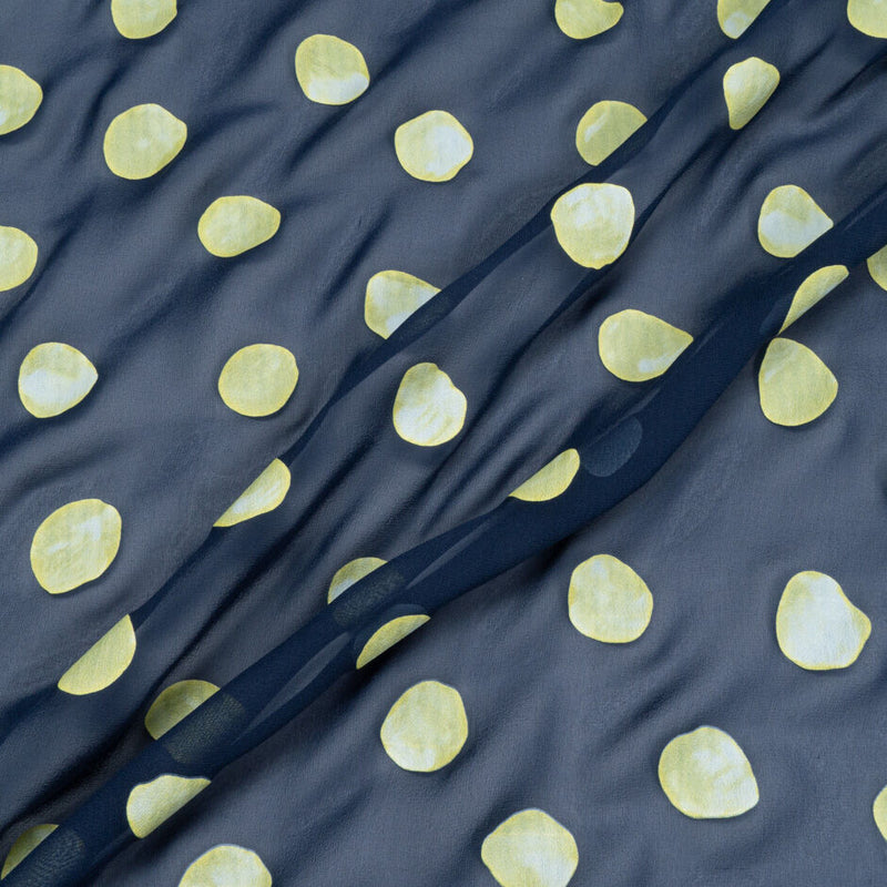 Yellow Vision Printed Spotted Navy Blue Silk Georgette
